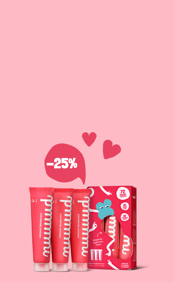 Wij staan voor fris zonder aluminium, parfum, parabenen, zout of drijfgassen. Geen deodorant is het beste voor planeet. Daarna komt nuud.