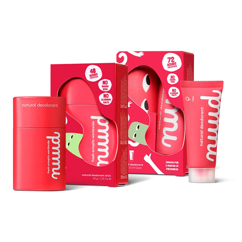 Kokosolie**, maïszetmeel*, zonnebloemwas*, was van Myrica-bes*, olijfolie**, ethyl citraat (plantaardig actief ingrediënt voor deodorant)*, plantaardige was*, plantaardige emolliens*, emulgator uit Macadamia-olie*, lactaatzout*, vitamine E*, zinkoxide*, zonnebloemolie*, zilver*, plantaardige emolliens*, plantaardige verdikkingsmiddel